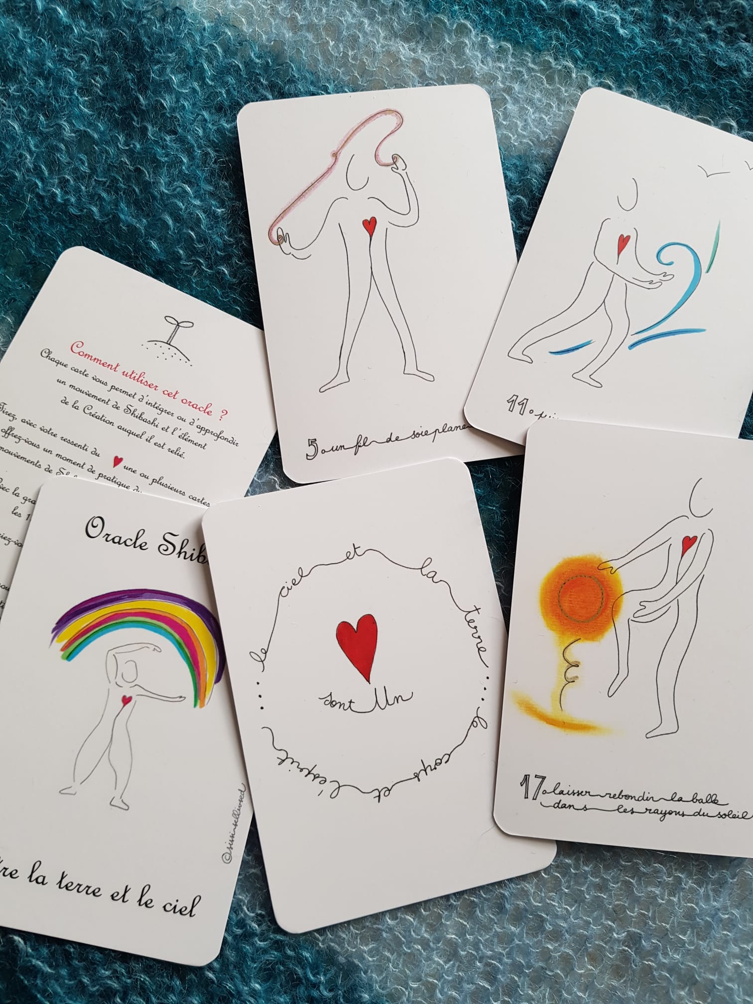 Chaque carte vous permet d’intégrer ou d’approfondir un mouvement de Shibashi et l ’élément de la Création auquel il est relié. Tirez, avec votre ressenti du coeur une ou plusieurs cartes et offrez-vous un moment de pratique du mouvement ou des mouvements de Shibashi apparu(s) dans votre tirage.